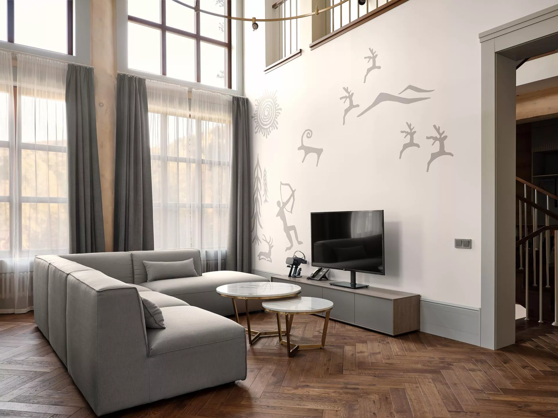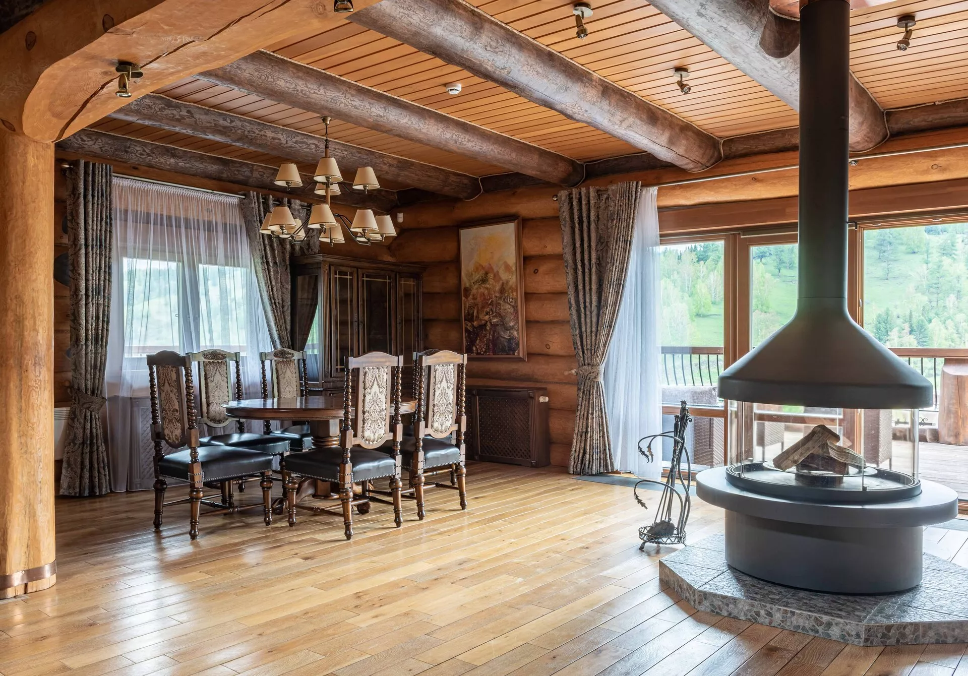- общая зона с камином в коттедже