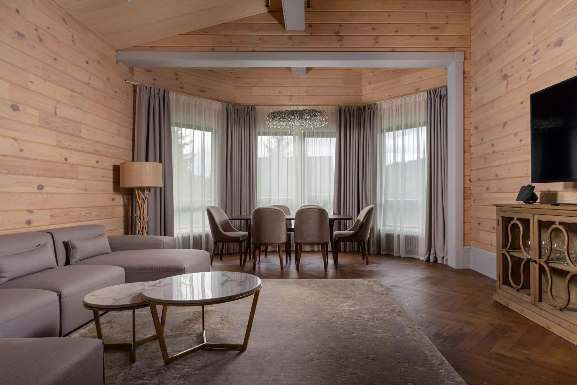 Каждый коттедж состоит из 3-х комнат категории Люкс, комнаты категории Делюкс Плюс, гостиной зоной с камином и кухонно-обеденной зоной.