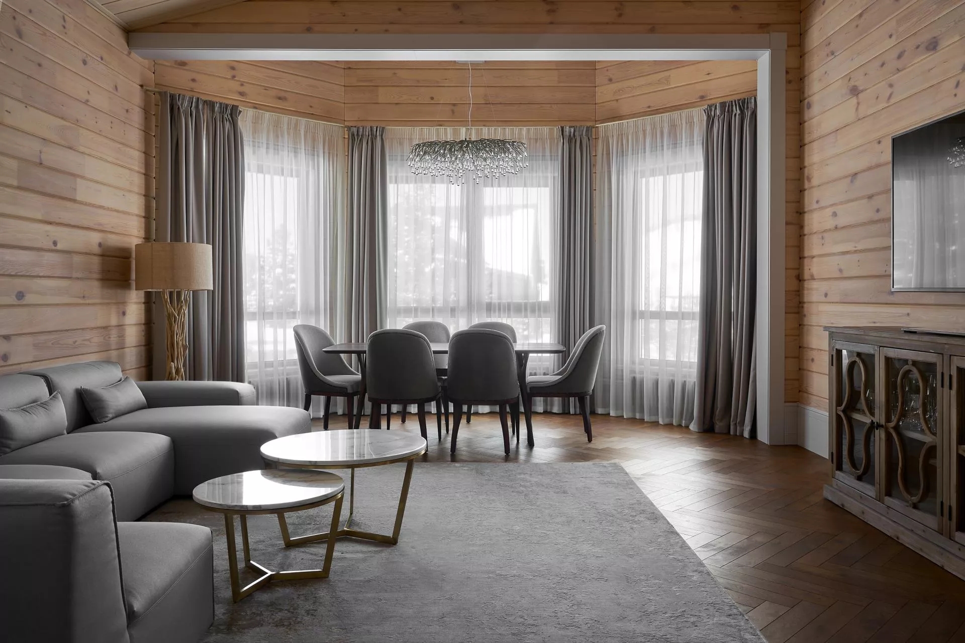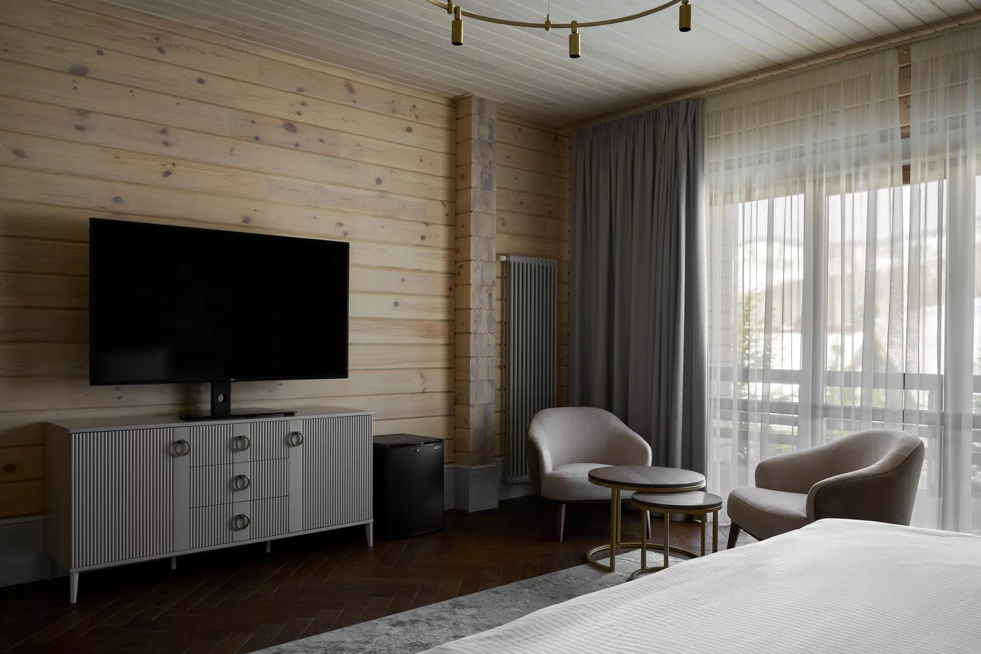 Каждый коттедж состоит из 3-х комнат категории Люкс, комнаты категории Делюкс Плюс, гостиной зоной с камином и кухонно-обеденной зоной.