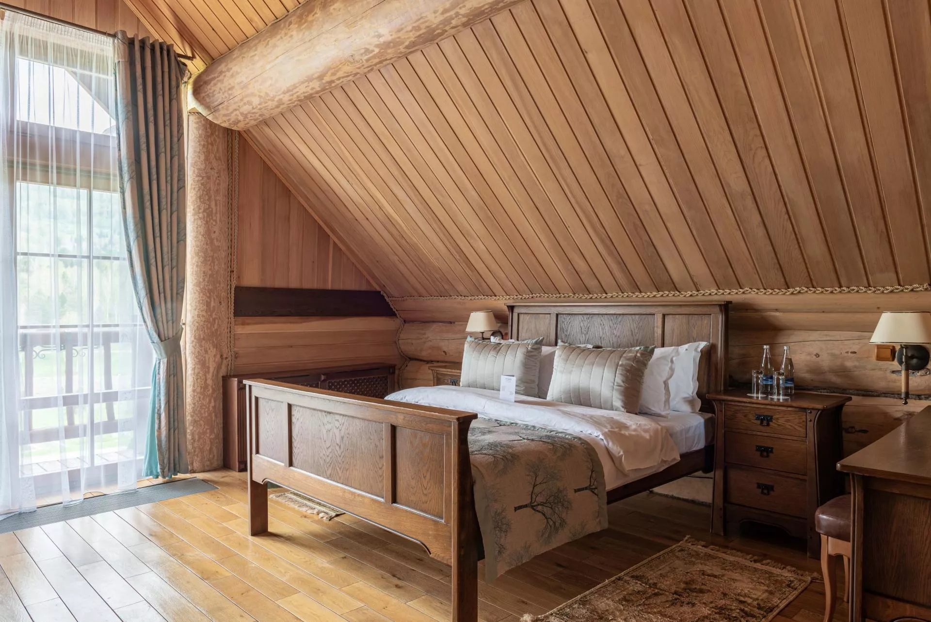Двухэтажный деревянный коттедж в старорусском стиле с кухонной и обеденной зонами, просторными спальнями и ванными комнатами. Наслаждаться запоминающимися летними вечерами можно на открытой террасе или в гостиной у камина. Выбор за Вами.