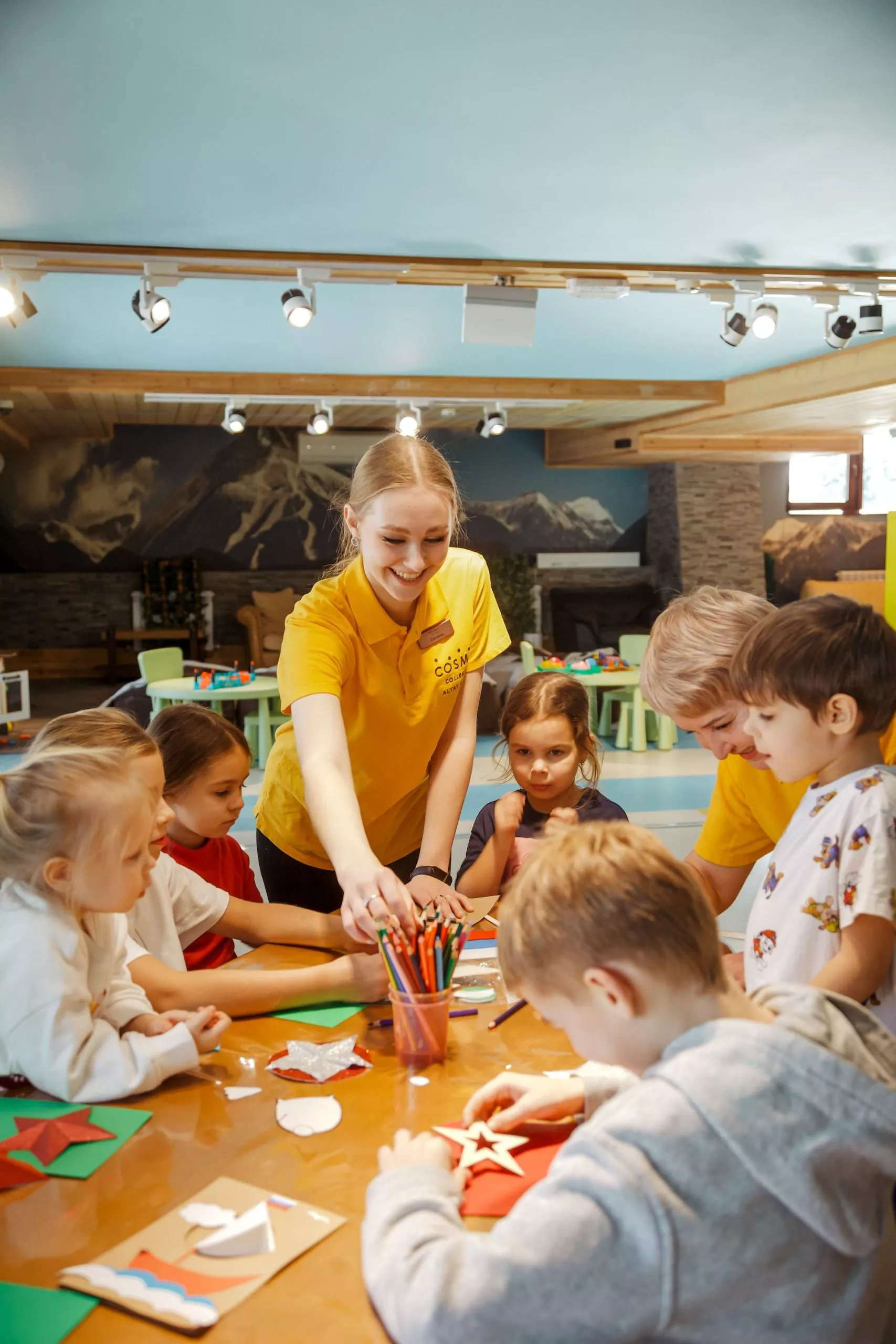 На территории комплекса Cosmos Collection Altay Resort расположен один из крупнейших в регионе досуговый центр для детей разного возраста. В нашем детском клубе маленькие гости найдут для себя развлечения на любой вкус: творческие мастер-классы, интерактивная анимационная программа, настольные игры, площадки для отдыха, кинозал, игровой лабиринт, зона со спортивными играми и многое другое. Благодаря детскому центру гостиница Cosmos Collection Altay Resort гарантирует вам комфортный отдых с детьми в Горном Алтае.